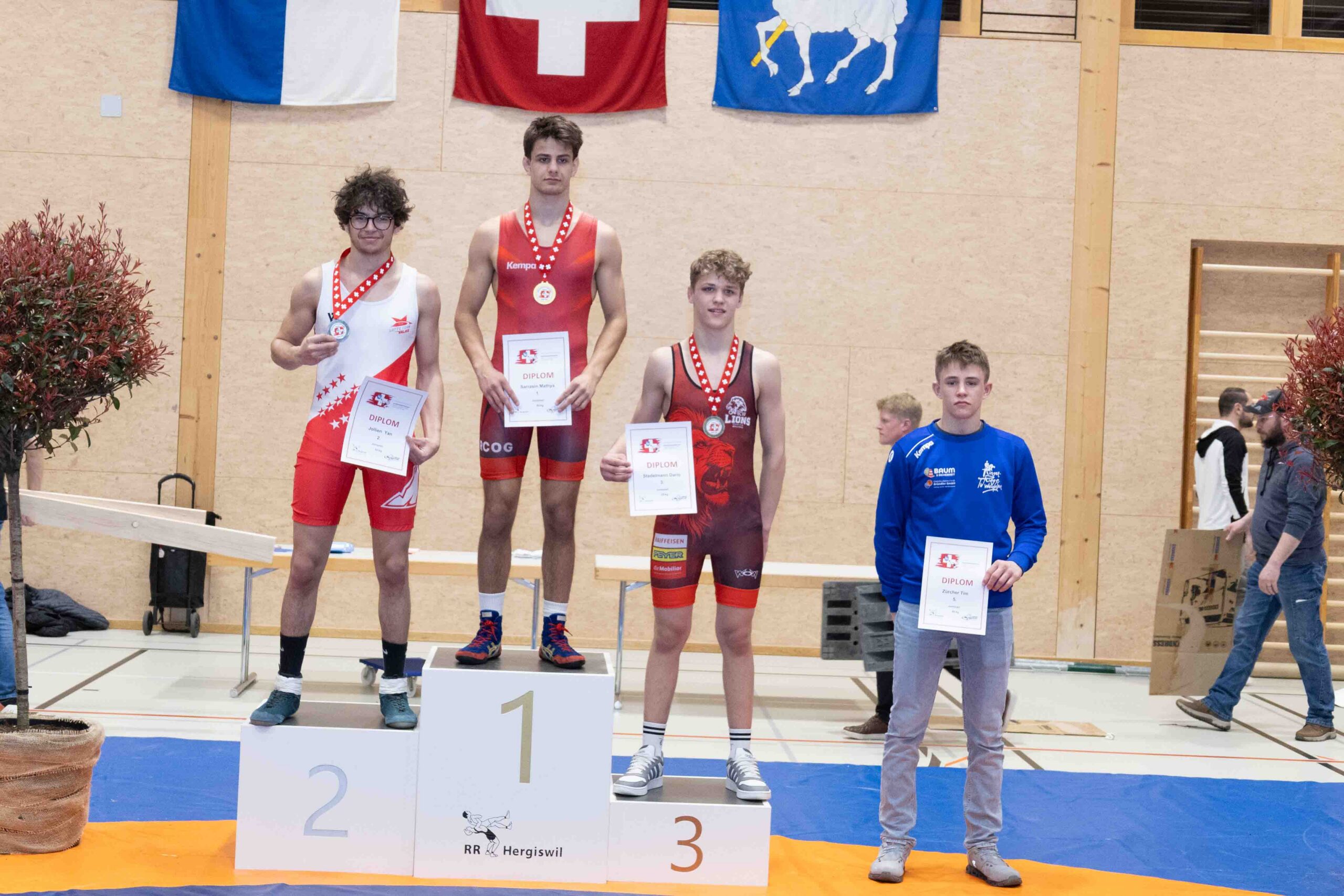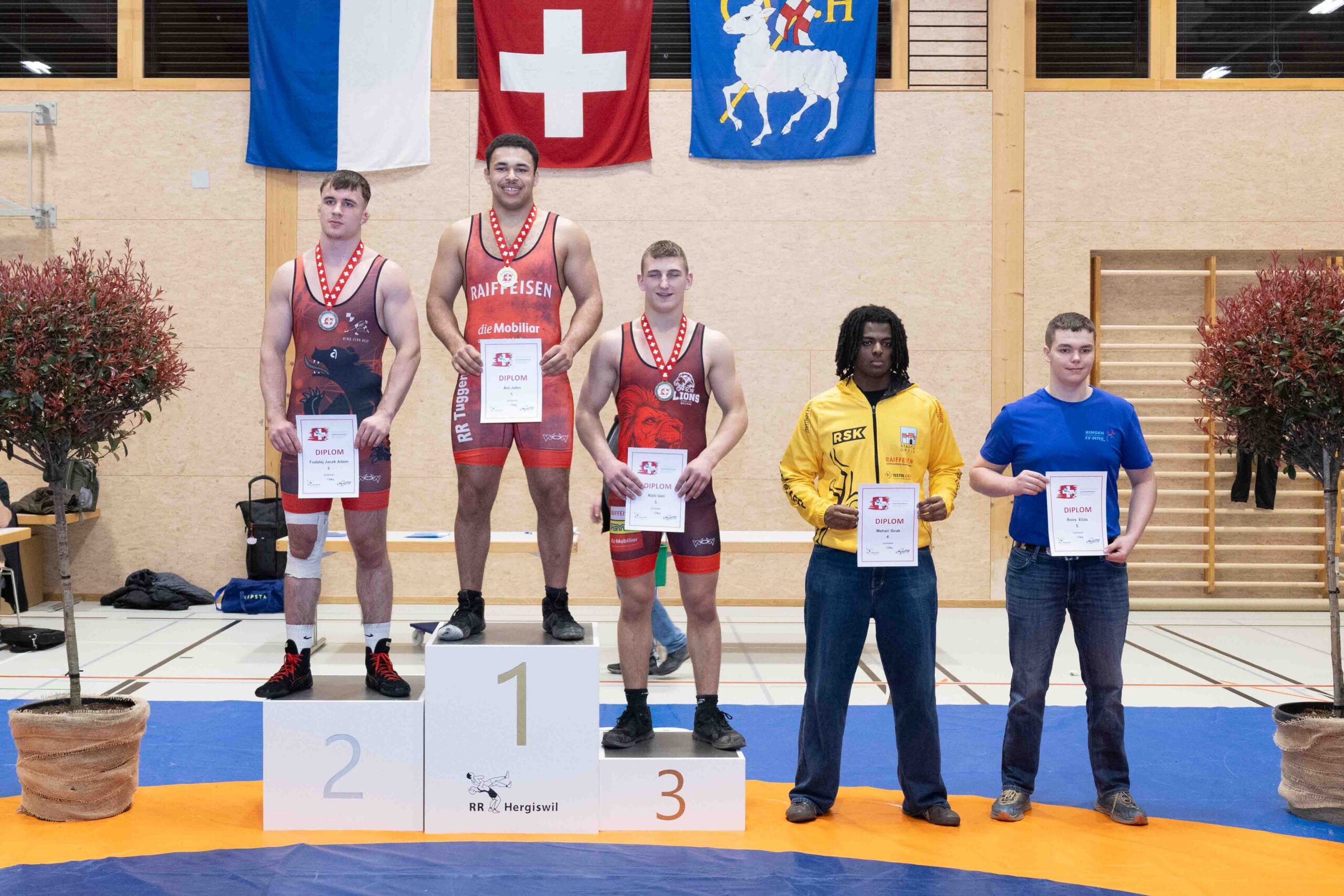 Bis 86kg liess der Willisauer Kaderathlet Nick Scherrer keine Zweifel an seinen Qualitäten. In überlegener Manier setzte er sich in der Vorrunde durch und traf im Final auf Noe Oulevey. Der Ringer der CO Domdidier, der im letzten Herbst mit Doppellizenz auch für die Hergiswiler antrat, gewann seine beiden Vorrundenduelle ebenfalls souverän. Im Final allerdings liess ihm Nick Scherrer keine Chance und setzte sich überlegen durch.